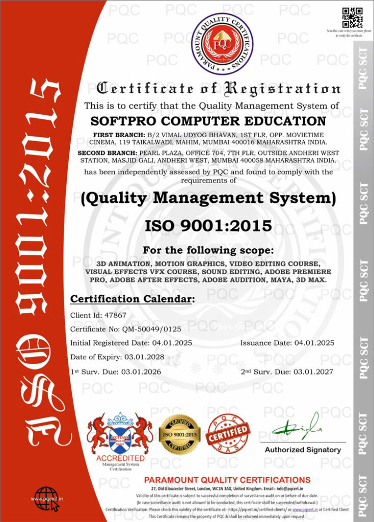 Softpro Computer Education is certified under ISO 9001:2015 – Quality Management System (QMS).